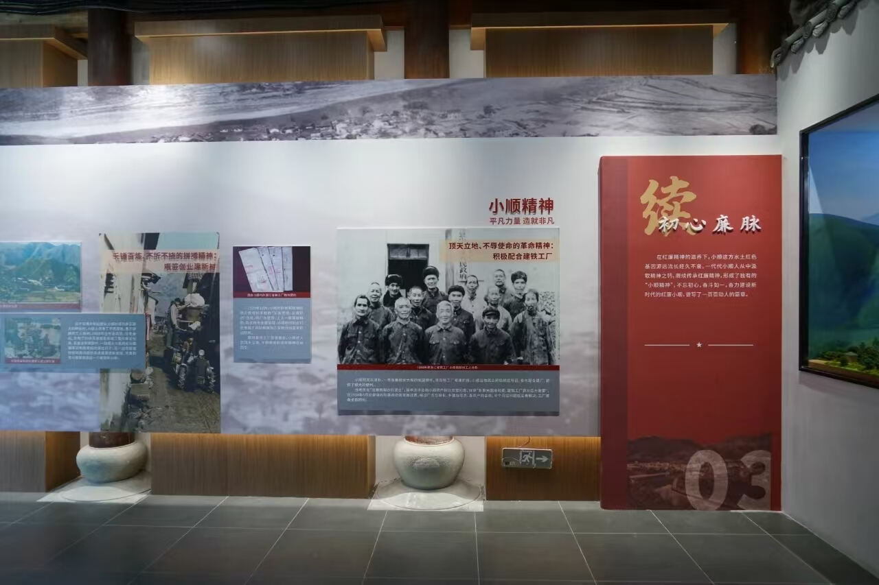 小顺红廉馆位于云和县石塘镇小顺村,室内布展面积574平方米,展馆分为“忆·红廉岁月”“品·红廉风范”“续·初心廉脉”“鉴·警钟长鸣”“赏·小顺清韵”五个篇章,运用多媒体、虚拟现实技术、沉浸式投影、全息技术等现代科技手法,展示小顺村从红色文化中汲取勤廉力量,奋力建设新时代的精神风貌。