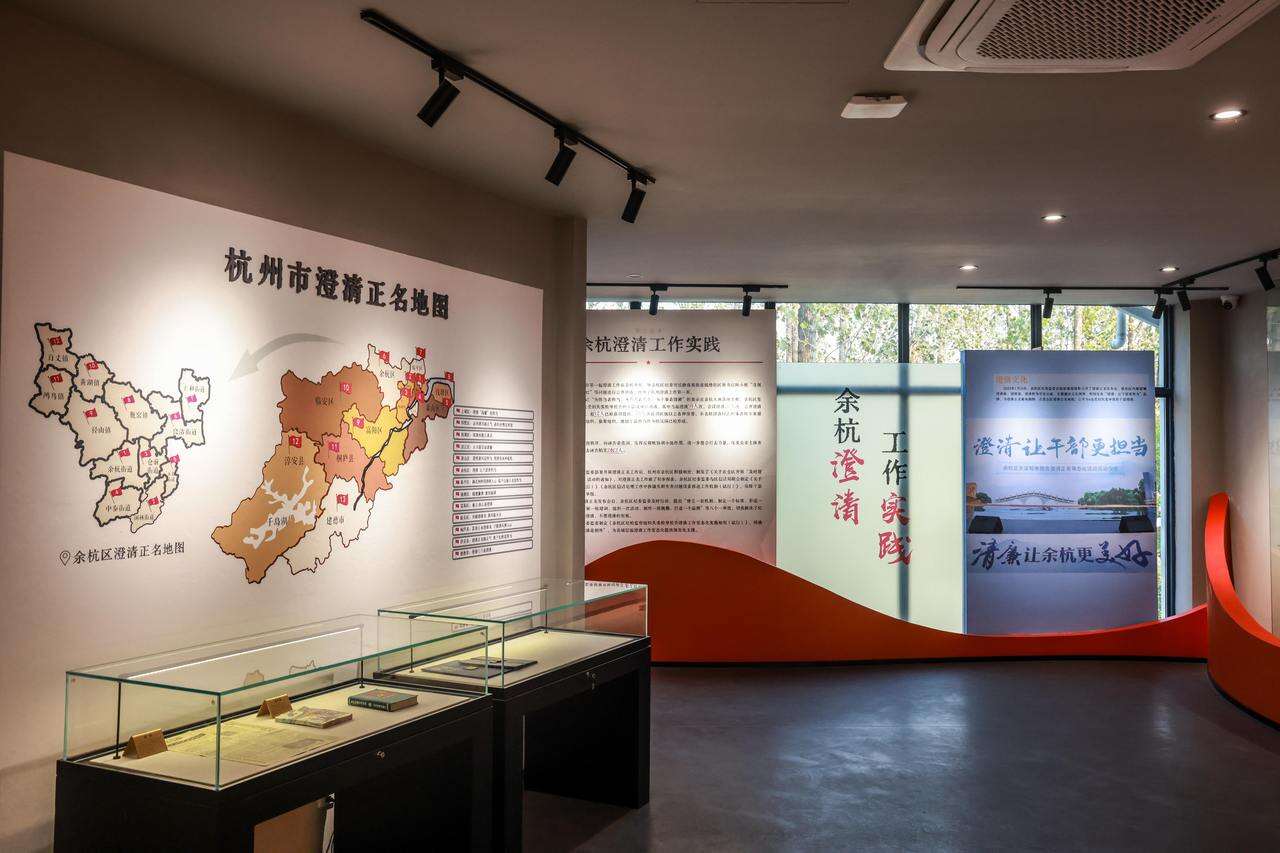 澄清正名展示馆位于杭州市余杭区瓶窑镇南山村的澄清桥畔,建筑占地面积750平方米,室内布展面积560平方米。展馆面向党员干部和群众开放,分为“溯古”“循迹”“话今”三个篇章。澄清馆既根植历史,梳理自古以来对抗诬告的斗争力量,展示余杭丰富的澄清文化;又立足现实,呈现当下纪检监察机关澄清正名工作的探索实践。